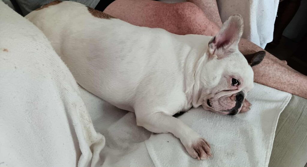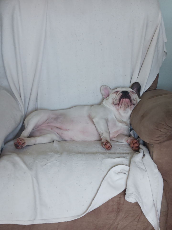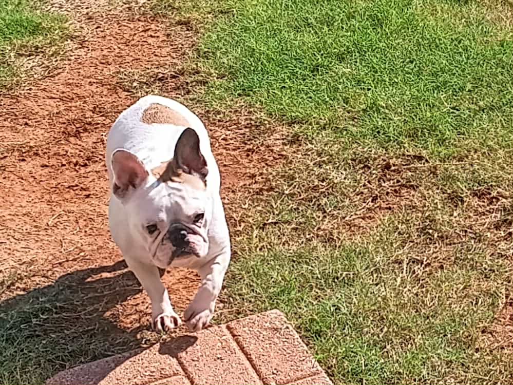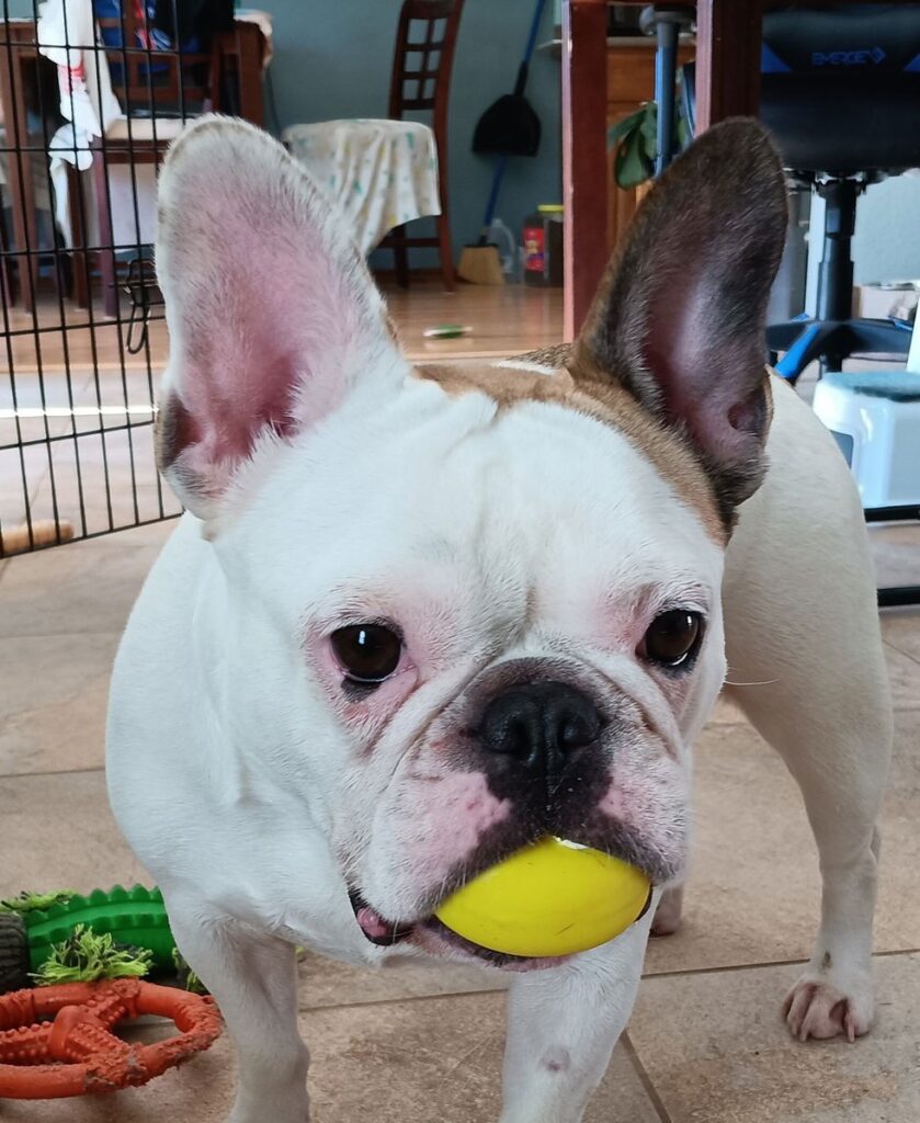 Barbie Sue is learning the ropes of house life—she’s almost housebroken and doing wonderfully. She’s crate trained (though she’d rather be out and about), walks okay on a leash, and absolutely needs a fenced yard to explore safely. She’s also a champ at car rides and grooming, especially when it comes to keeping her adorable facial folds clean and dry.