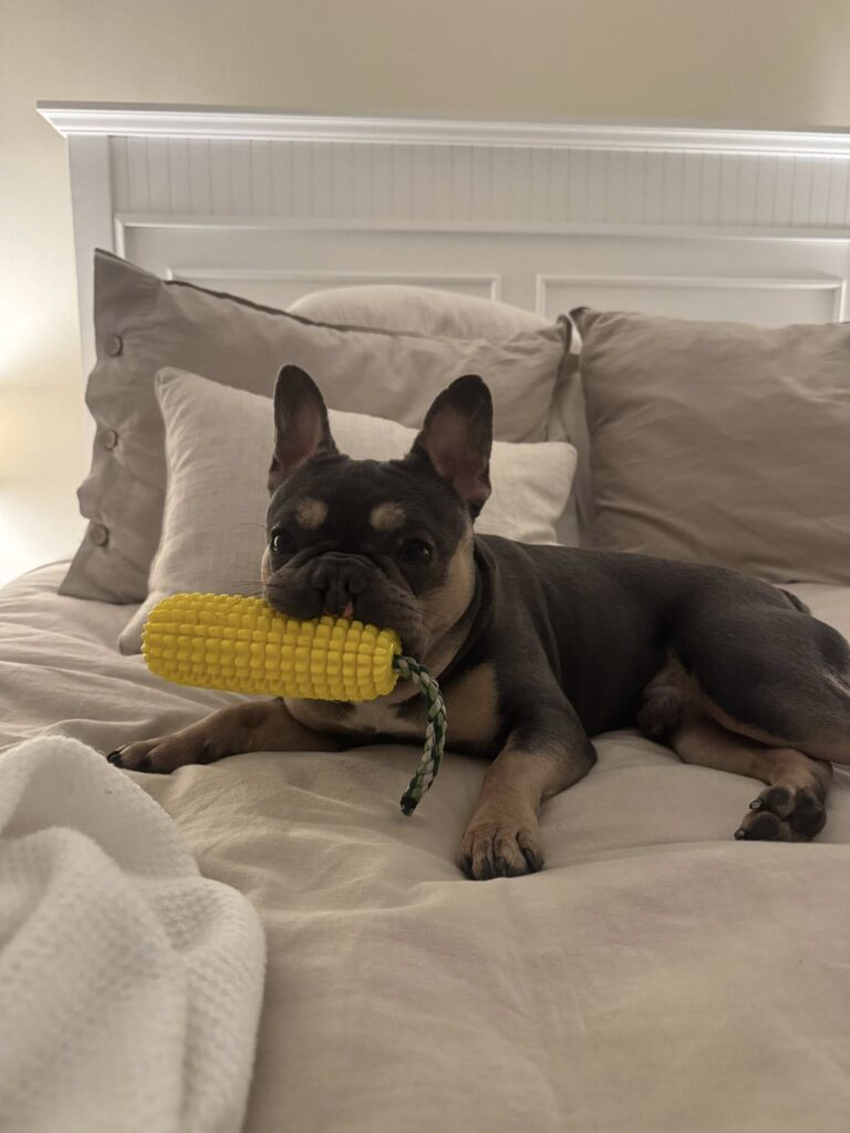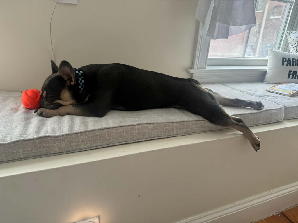 He MUST ALWAYS have a toy in his mouth. This is not negotiable! He will even sleep with one next to his mouth. Coda has LOVED everyone he’s met and is getting along fantastically with the resident dog. However, he will need a home with older dog savvy children.