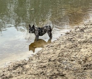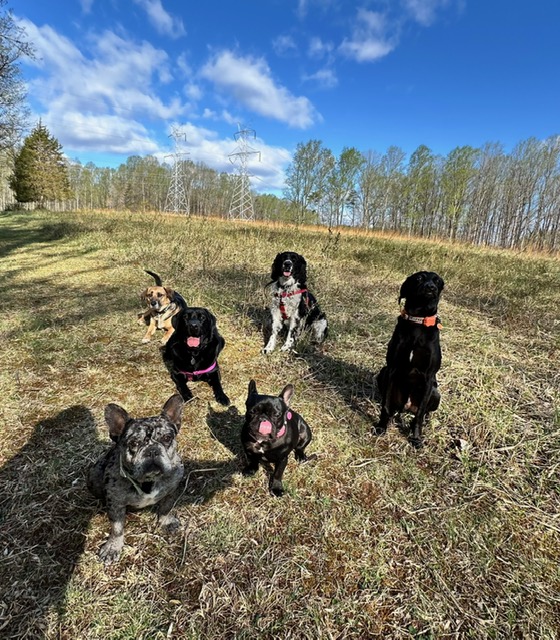 When Francine's energy isn't channeled, she can tend to be very busy and restless in the house. She currently does pack hikes daily for 2-4 miles with anywhere from 8-10 different dogs. She really enjoys it and waits by the door every morning to head out on her adventures. She pays attention to her handler extremely well and has mastered her recall skills and the command to “sit.” Once she's been sufficiently worn out, she can be a couch potato.
