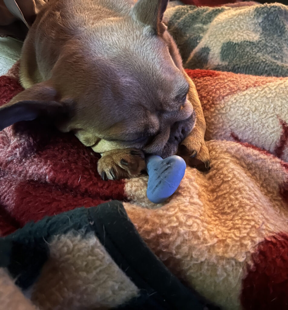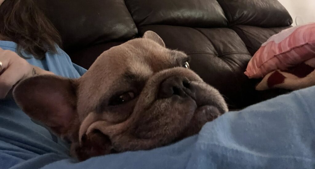 Jessie’s bladder is tiny, and she’s partially housebroken. She goes outside like a champ and does well in her crate for up to eight hours during the night, but she’s not always reliable about signaling when she needs to go. Frequent potty breaks are key. She also has a hooded vulva that requires daily cleaning and monitoring for UTIs. At night or when she’s deeply relaxed, she may drop a tiny bit of poo—easy to clean and no big deal for someone who understands her gentle needs.
