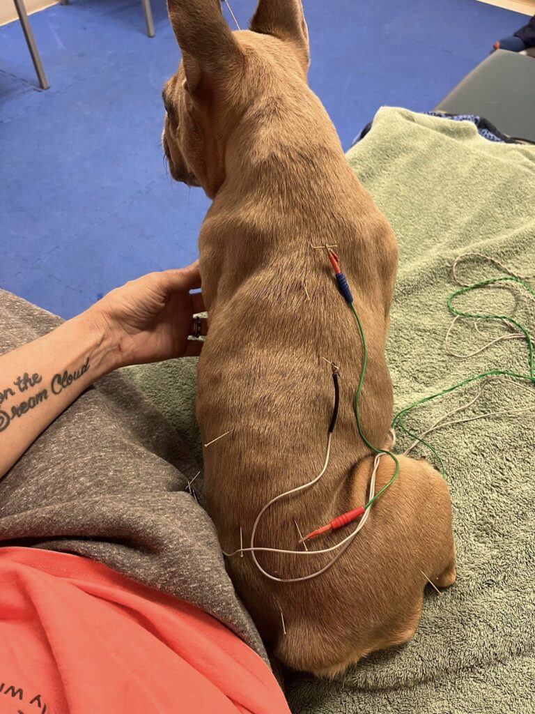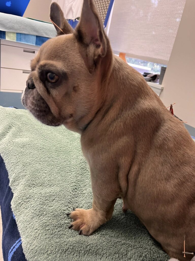 She’s got a quirky little giddy-up in her back left leg, a result of a poorly structured back end and possibly some double joints. She’ll always look a bit underweight—and should stay that way to protect her spine—but don’t let her dainty frame fool you. Jessie is sturdy in spirit and strong in her will to thrive. She’s received electro-acupuncture, B12 injections, and takes Chinese herbs and Dasuquin to support her hindquarters. No further neurology appointments are needed, but quarterly acupuncture and B12 treatments are recommended to keep her feeling her best.