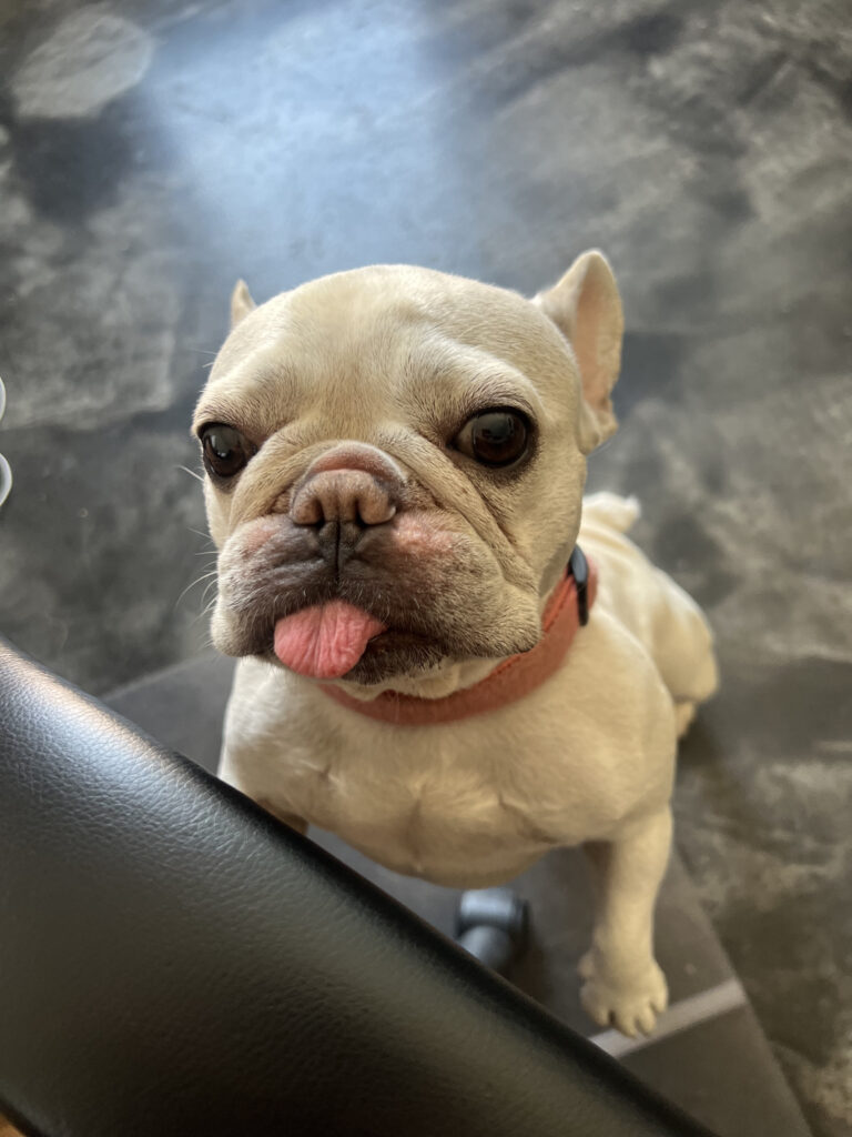 Lumi is an absolute sweetheart. She is a Velcro Frenchie to the MAX and will follow her foster dad around EVERYWHERE. Restroom activity? She'll be right there. Restroom door not fully closed? She'll bust it right open or wait right outside the door until you open it.