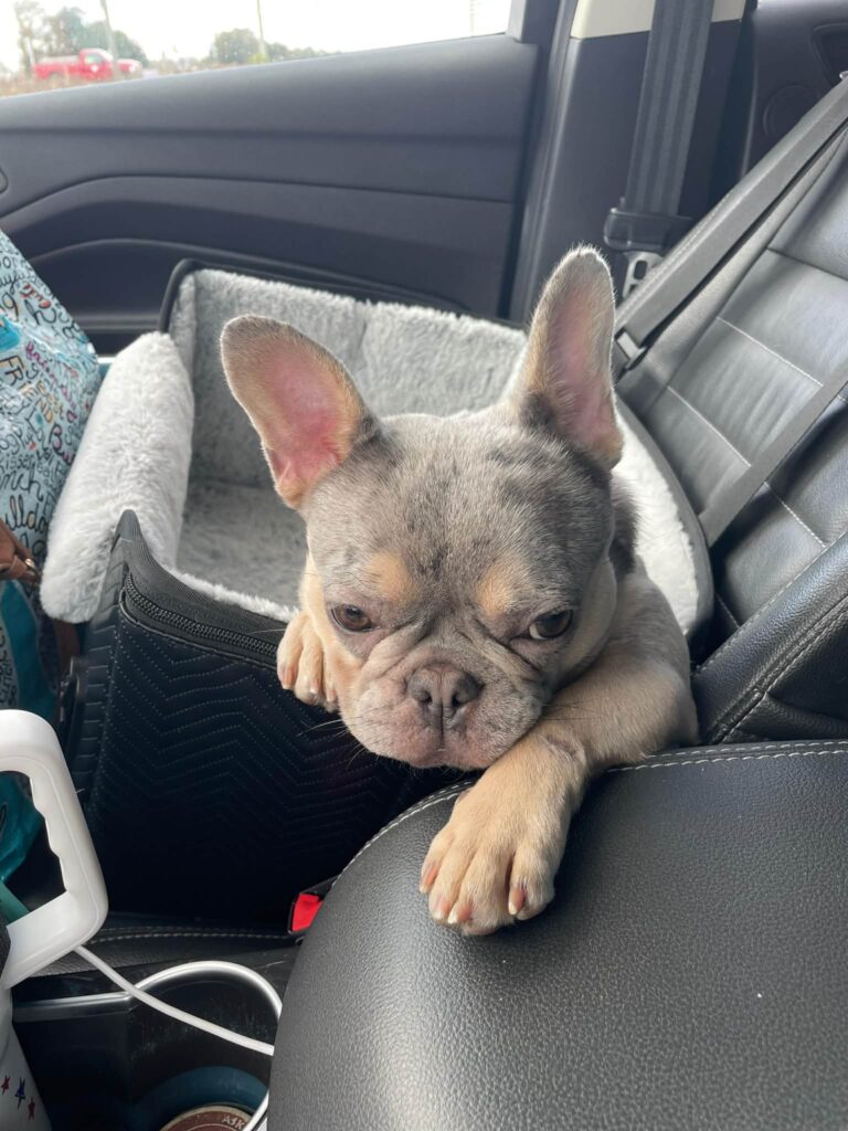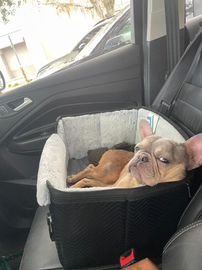 And play she does! Ophelia loves tug of war, hide and seek, tag, and anything involving stuffed toys. She is high-energy in bursts, then transforms into the world’s most devoted snuggler—preferably pressed right up against your face. She is wonderfully silly, full of wonder, and so excited about every new experience that she can barely control her wiggly little body. Leashing her is a comedy show all on its own.