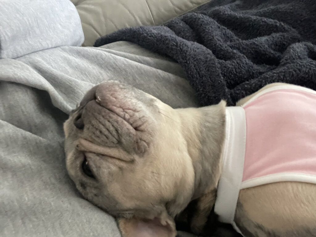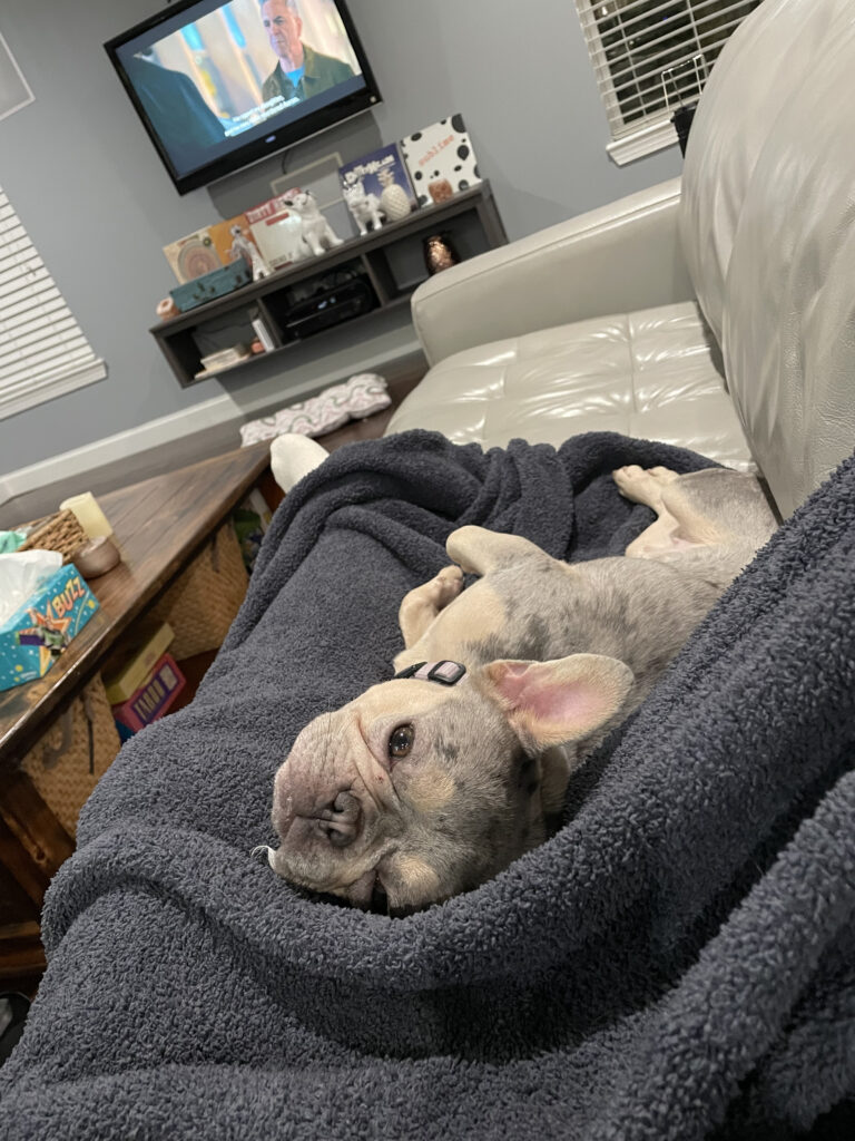 Today, Ophelia is healthy, happy, and finally getting to live the puppyhood she never had. She likely has some mild allergies, but they’re managed beautifully with daily fish oil, weekly medicated baths, and a poultry-free diet (she currently eats Taste of the Wild lamb). And speaking of baths—Ophelia adores them. It might have something to do with the peanut-butter-covered lick mat she gets to enjoy, but she’s also been a perfect angel at the groomer.