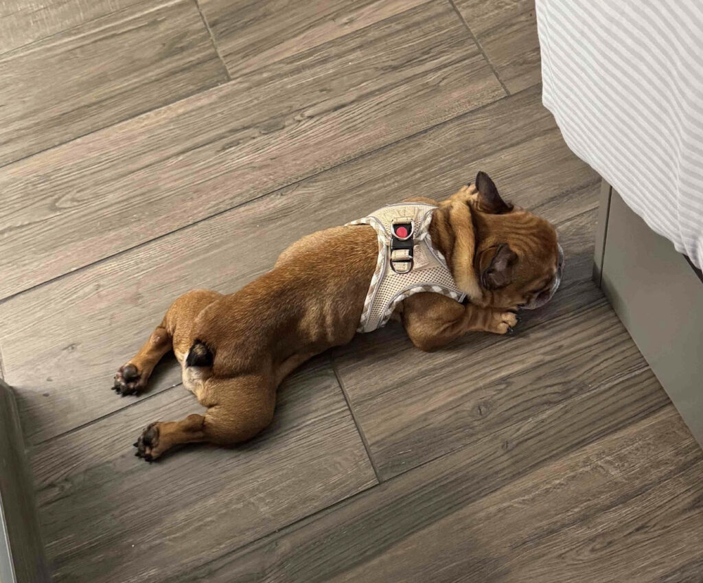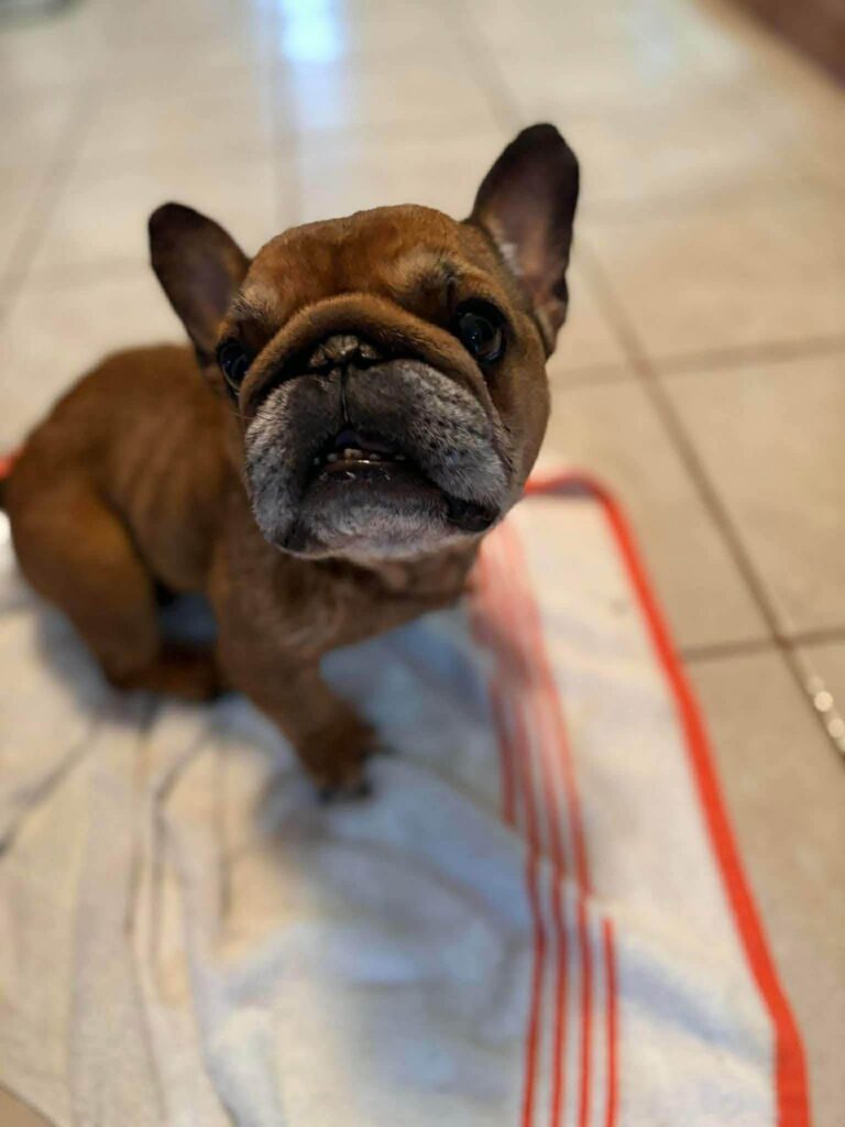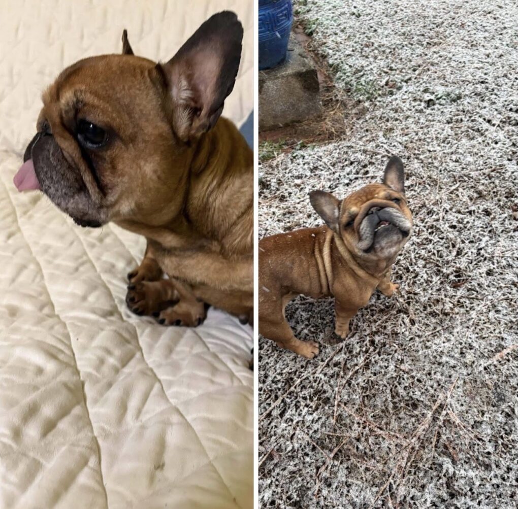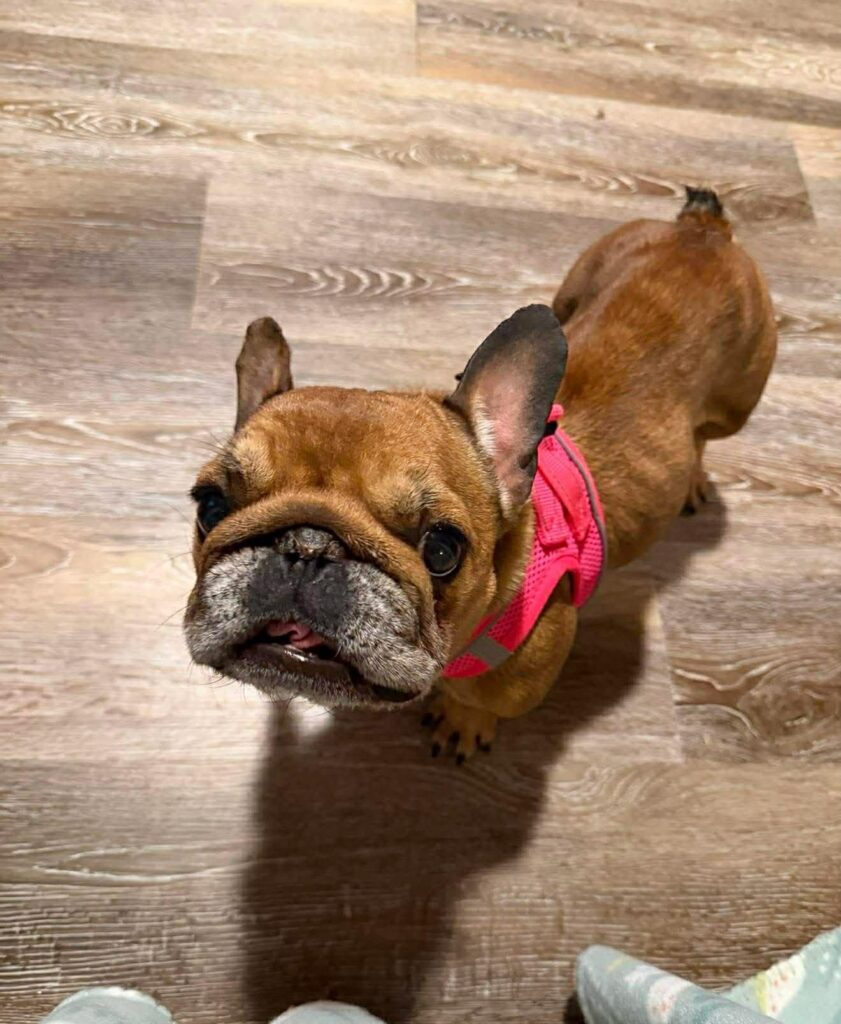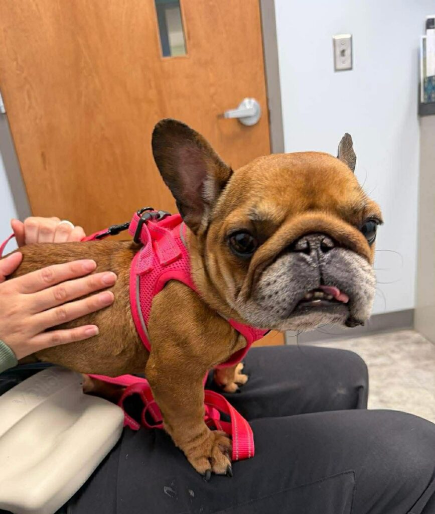 Twix arrived in rescue with more history behind her than anyone could fully know. At 6–7 years old and just 14 pounds, she had already lived the hard life of a breeder dog, having a couple of litters before being surrendered to a local rescue and eventually making her way to FBV. She came in needing emergency surgery for pyometra, but in true Twix fashion, she recovered beautifully — tiny, tough, and determined to keep going.